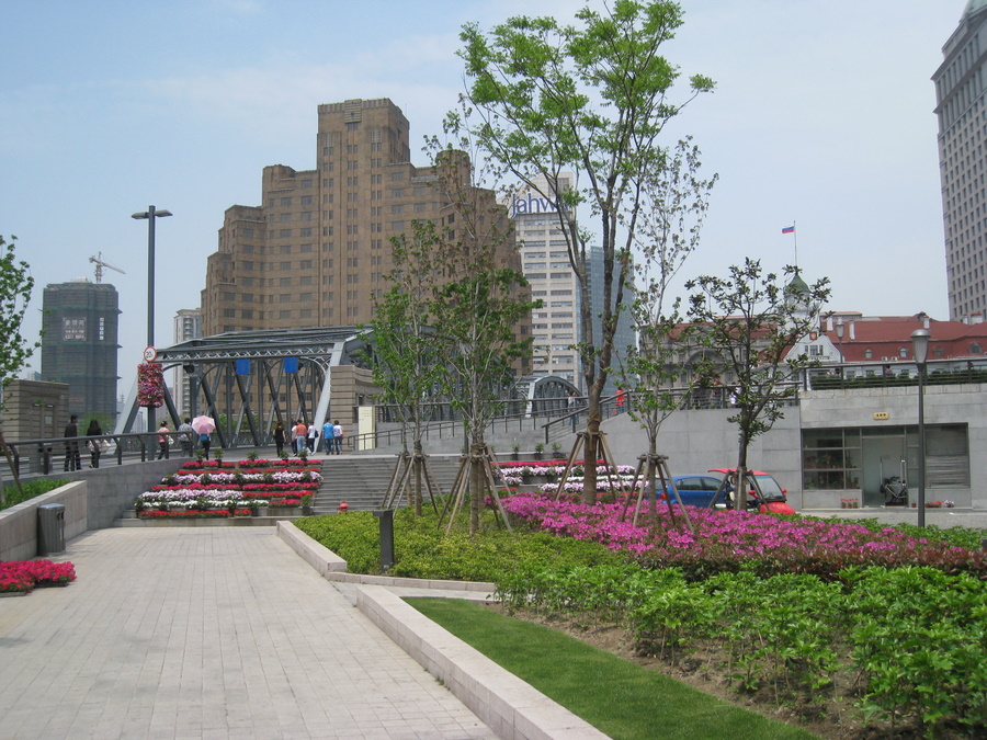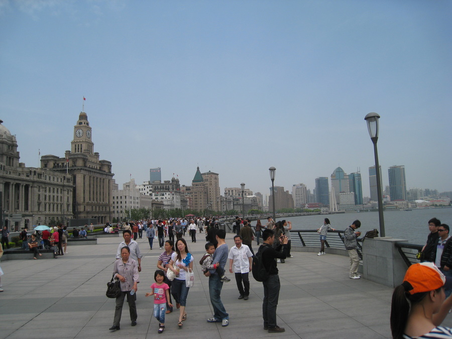 Vi startede med at gå ned til The Bund som er Shanghais brede havnepromenade langs floden. På den ene side af flodbredden ligger de gamle store koloni bygninger i empire stil som tidligere var Shanghais symbol på penge og magt. I 1930’erne var stedet her Shanghais ”Wall Street” og var hjertet af det engelske og amerikanske kvarter. Mod Nord over Suzhou bifloden havde Japanerne besat området under 2. verdenskrig og adgangen dertil var via Kinas første stålbro fra 1907.
