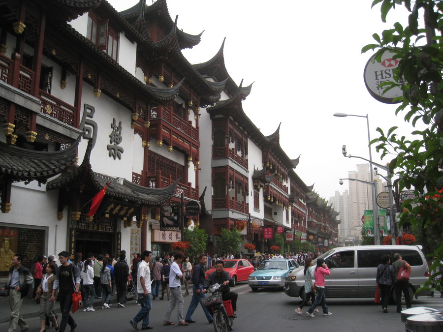 Lidt syd for The Bund ligger Yuyuan Bazaar, som også kaldes ”det gamle kinesiske kvarter”. Selve basaren er nyopført i gammel Ming- og Qing-dynastiernes byggestil med grå tegl og tagskæg, hvide mure og røde søjler. Her ligger 100-vis af små butikker, te-huse, restauranter og snackbarer – alt det turisterne efterspørger.