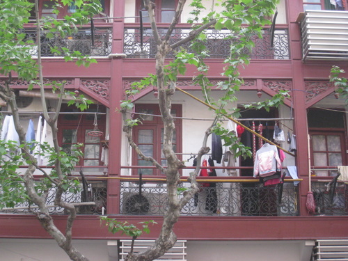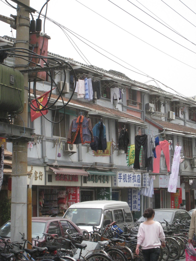 På vej tilbage mod hotellet kom vi igennem de gamle gader, hvor de lokale stadig tørrer deres tøj på bambus pæle ud fra altanen og vinduerne.