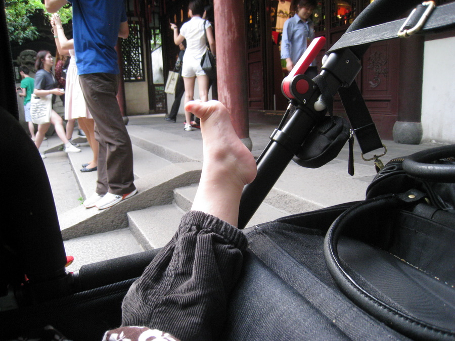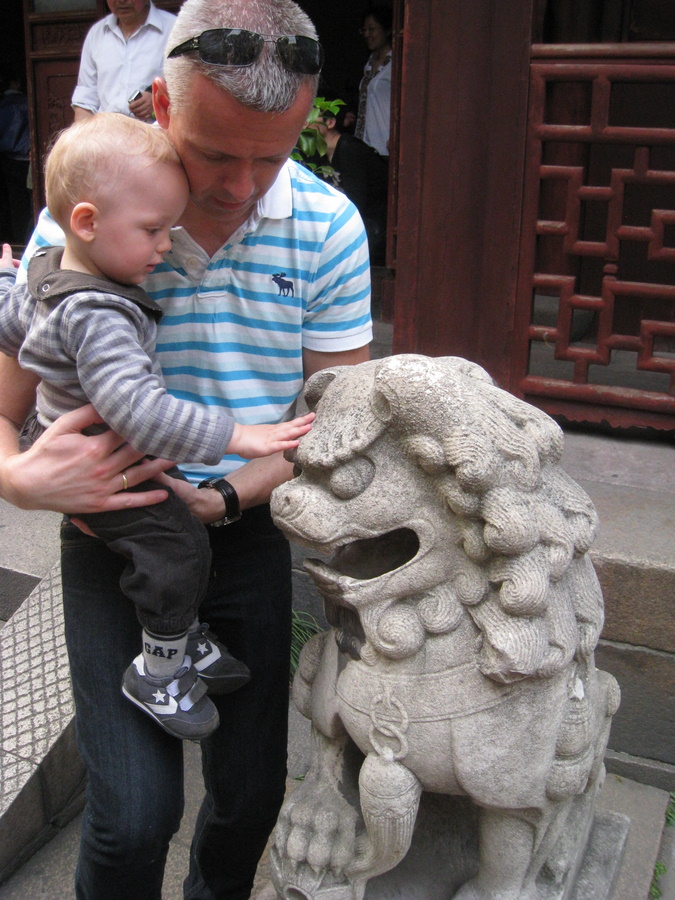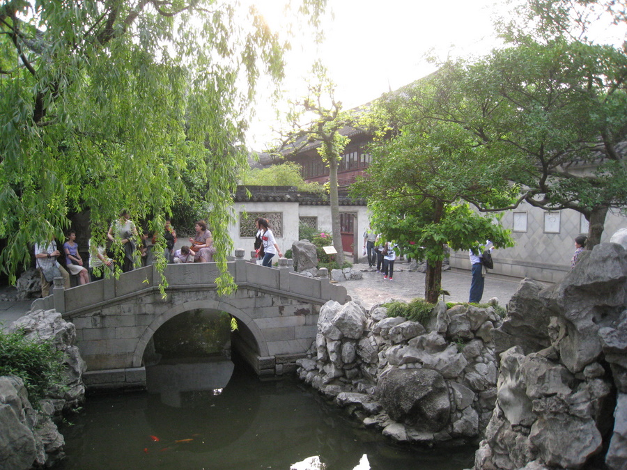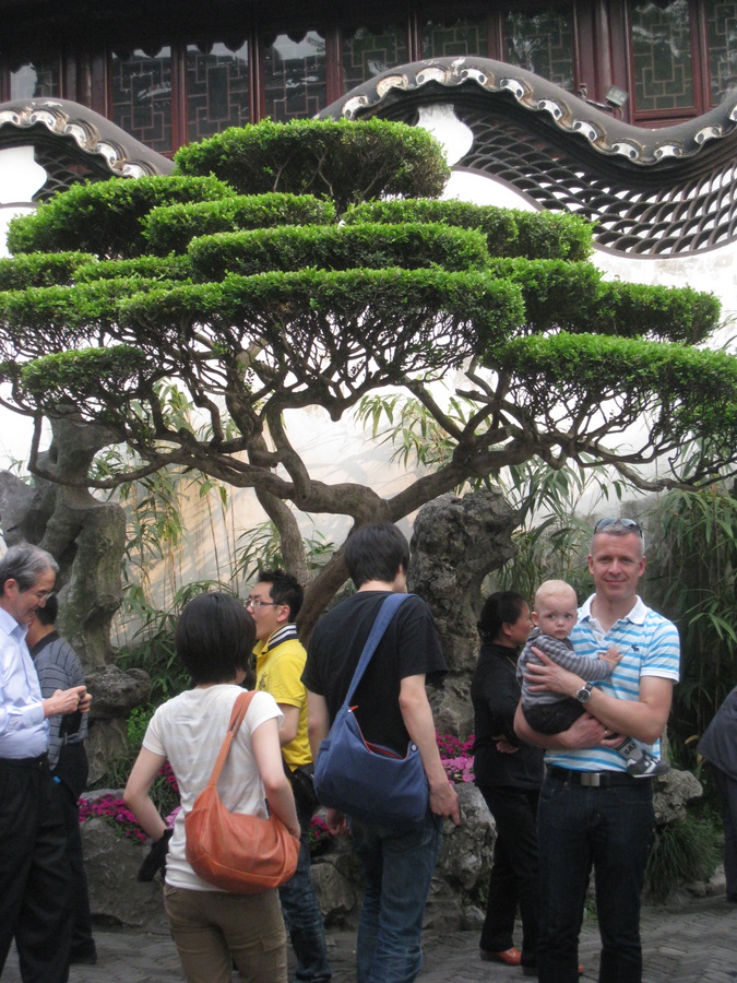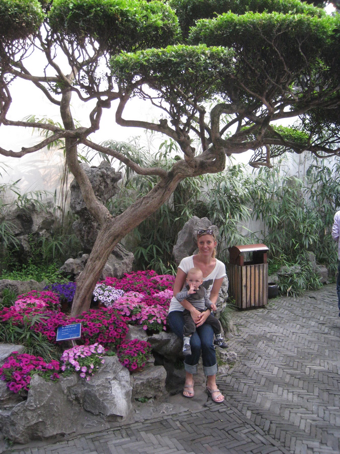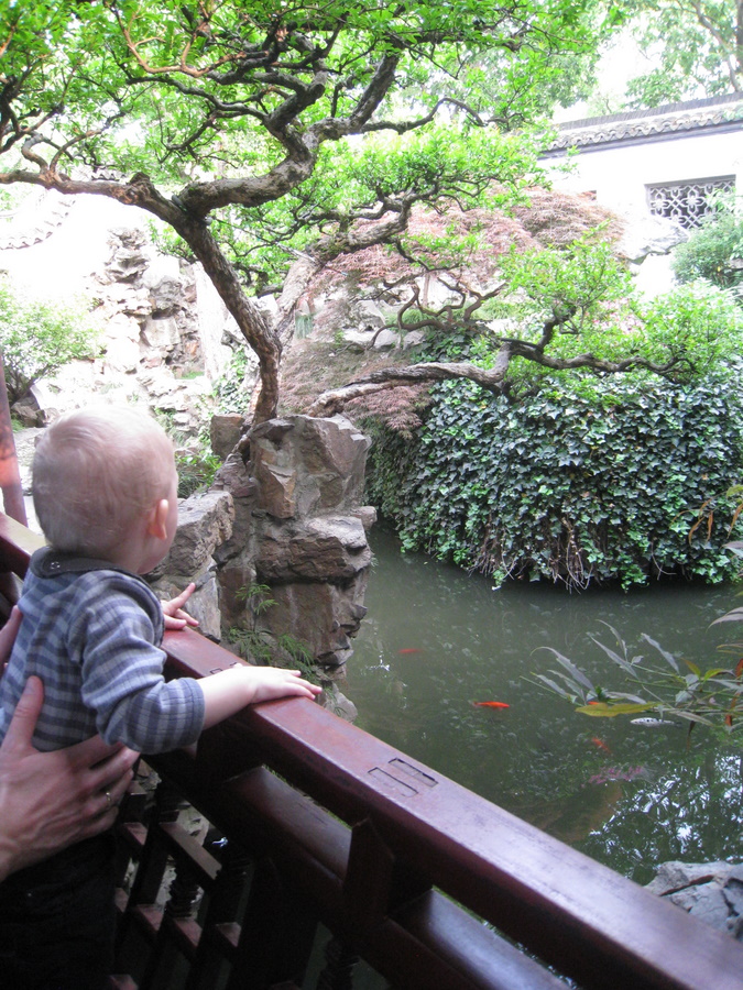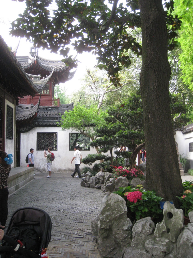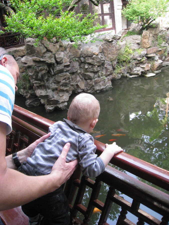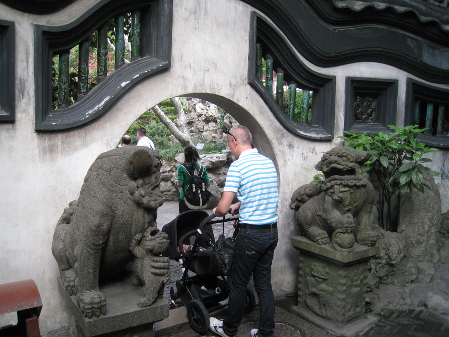 Yuyuan Garden er en lille have konstrueret på en måde så den syner langt større. Haven blev skabt i 1559 til 1577 af en rig embedsmand, Pan Yunduan, som fik den anlagt til sine forældre. Haven har masser af pavilloner, kunstige landskab af jadeklipper, gamle ginkgotræer og damme med fede karper. Det var lidt besværligt at komme rundt med klapvognen i haven, da der er en del trapper. Der var en helt specielt atmosfære inde i haven, meget stille og fredfyldt – meget modsat den travle basar lige udenfor og ikke at nævne The Bund som ligger under en kilometer herfra.