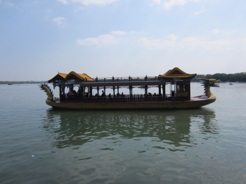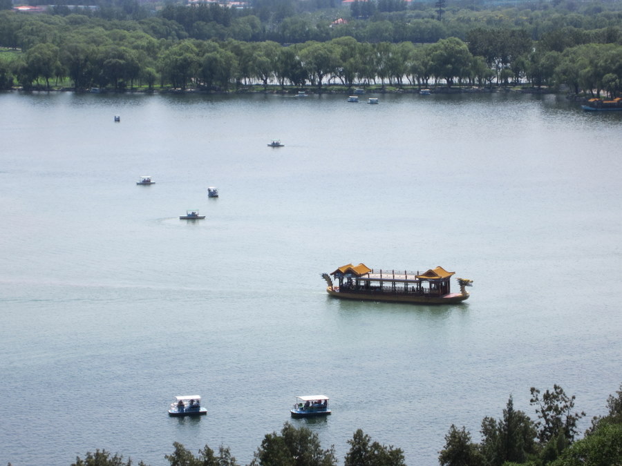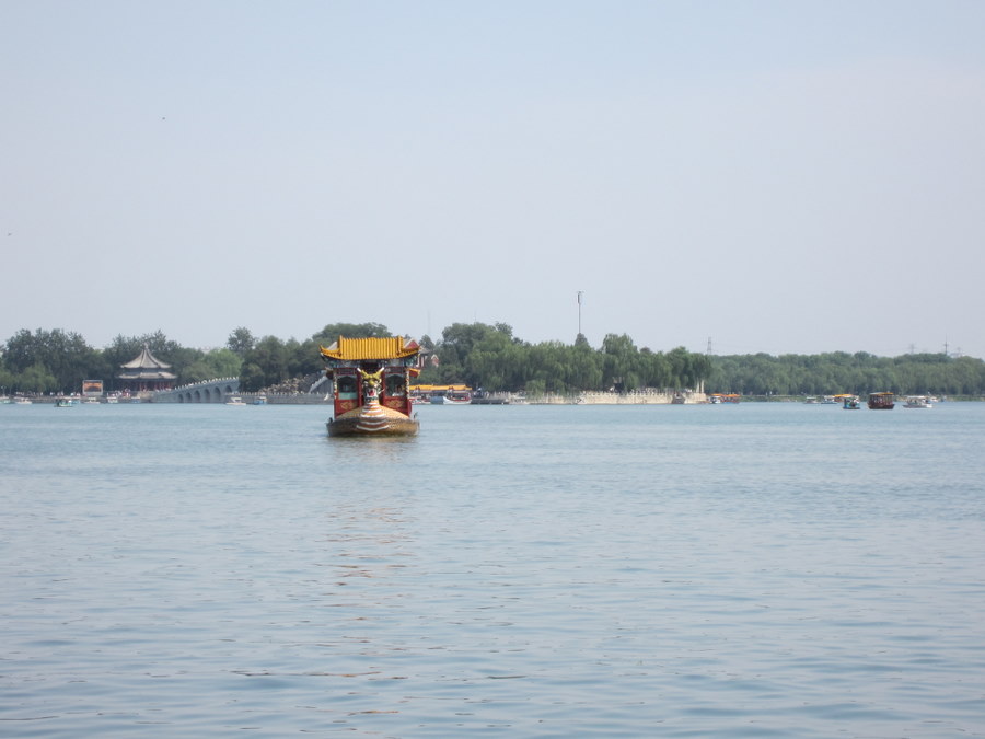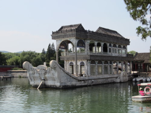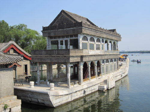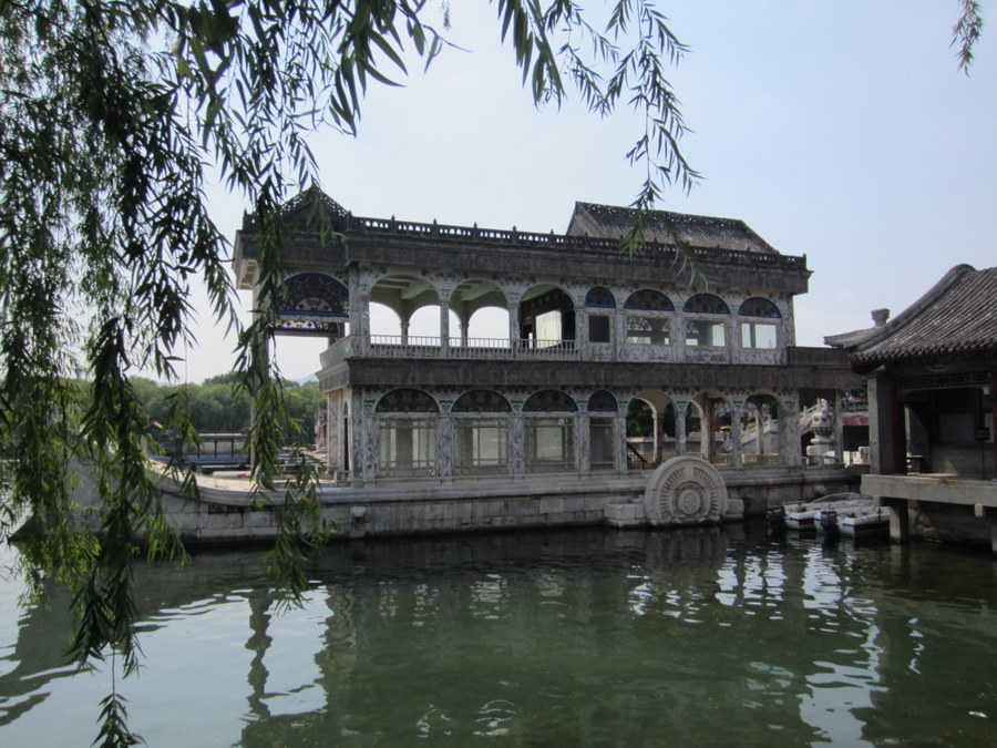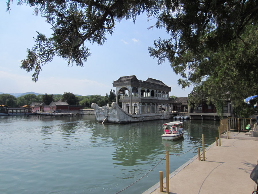 Efter en is gik vi alle videre mod vest, stadig via Den Lange Gang og endte ved Marmorbåden. Enkekejserinde Cixi byggede denne store båd af marmor, og som er vidner om det ødsle liv i Sommerpaladset i kejsertidens sidste dage. Rygterne siger nemlig, at båden blev bygget for penge, som oprindeligt var tiltænkt den kinesiske flåde. Om den unge, umådelige smukke Cixi af tvivlsom herkomst, skrives der, at hun som 15 år gammel i 1851 blandt 60 andre unge manchu-piger blev udvalgt til kejser Xianfengs konkubine. Efter kejsernes død blev hun ophøjet til enkekejserinde, da hun havde skænket kejseren den søn, der skulle efterfølge ham på dragetronen. Fra da af og frem til sin død i 1908 var Cixi den mest magtfulde kvinde i hele Kina, og hun overlevede hele tre kejsere. Hun regerede reelt både sønnen, kejser Tongzhi, og nevøen, kejser Guangzu, og på sit dødsleje nåede hun også at udvælge Puyi til at blive den næste og som det skulle vise sig, sidste kejser.