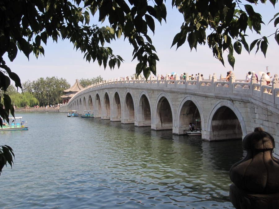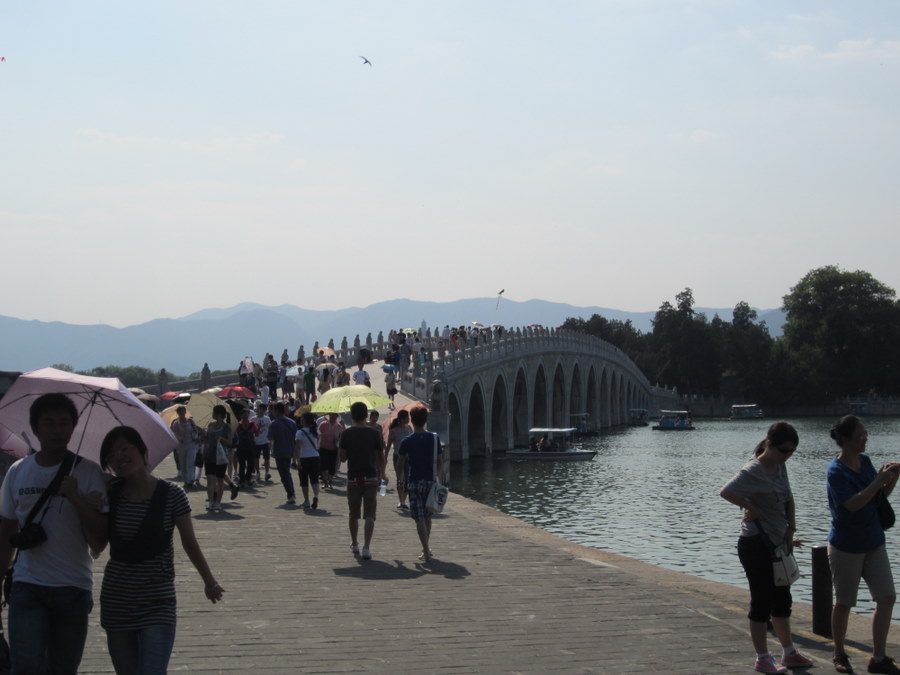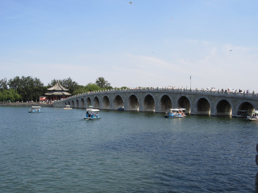 Fra Marmorbåden tog vi en fladbundet dragebåd ud til Nanhu øen, som er landfast med De 17 Buers Bro og gik tilbage mod den østlige indgang.