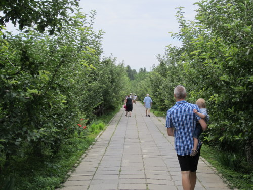Vi valgte at gå det sidste stykke mod The Orchard på en lille vej tæt omgivet af æbletræer.